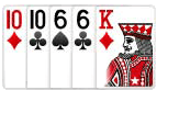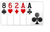 TWO PAIR : kombinasi kartu ini membutuhkan 2 pasang kartu dengan angka yang sama. Misal : 1 ♣ - 1♦ - 8 - 8♦ - 2 ♠ atau 10 ♣ - 10♦ - K ♠ - K♦ – Q ♣